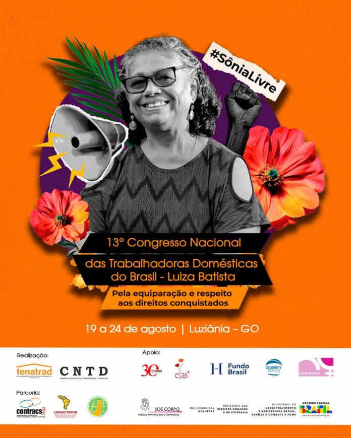 De 19 a 24 de agosto, em Luziânia (GO), a Federação Nacional das Trabalhadoras Domésticas (FENATRAD) promove o congresso com o tema “Pela Equiparação e Respeito aos Direitos Conquistados”, destacando a luta contra o trabalho escravo e por reparação histórica.
