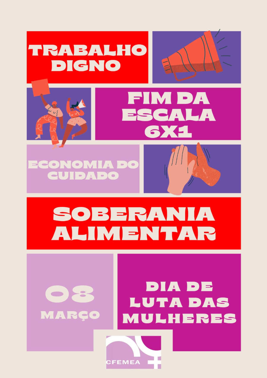 Dia Internacional da Mulher terá atos em várias cidades com as bandeiras “Pelo direito à vida, por maior representação política, em defesa da soberania dos povos e pelo fim da escala 6x1”