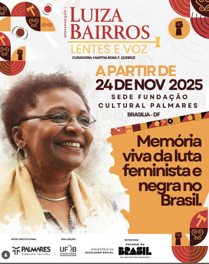 A partir de 24 de novembro de 2025 em Brasília, mergulhe na história e legado de Luiza Bairros! A exposição “Luiza Bairros: Lentes e Voz” é uma memória viva da luta feminista e negra no Brasil. Uma celebração da sua trajetória, curadoria de Martha Rosa F. Queiroz.