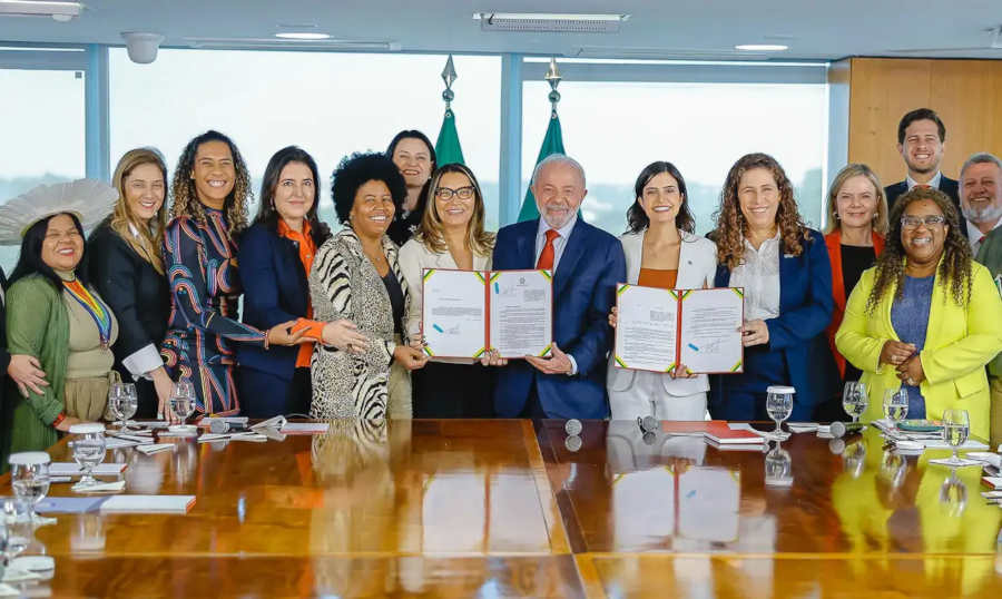Lei será implementada de forma gradual em até três anos. A sanção ocorreu em cerimônia, no Palácio do Planalto, com a presença de Lula, de ministras, parlamentares, líderes empresariais e representantes da sociedade civil.